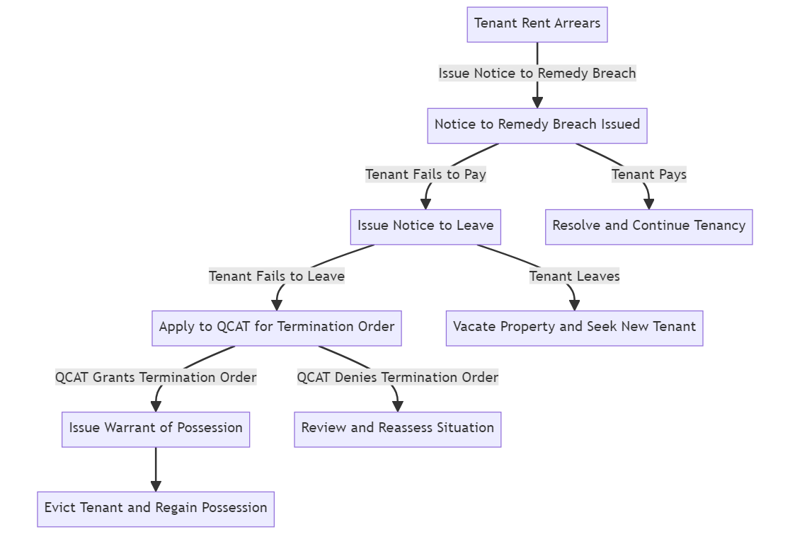 If the tenant still doesn’t leave, the landlord can apply to the Queensland Civil and Administrative Tribunal (QCAT) for a termination order and a warrant of possession. This legal process ensures that landlords follow a fair procedure, respecting tenants’ rights while addressing rent arrears.